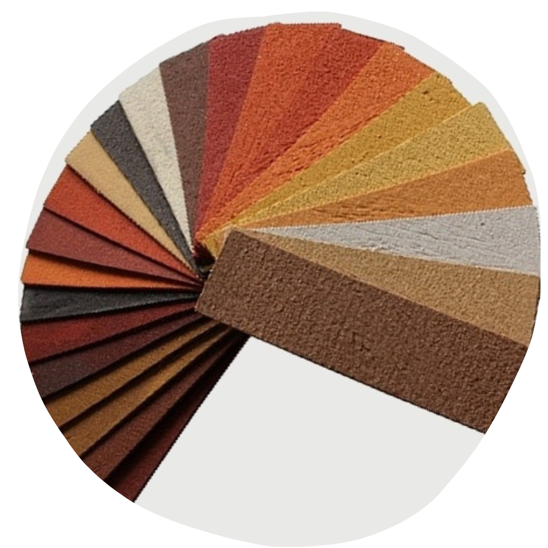 Кварцевый песок и мраморная крошка окрашиваются ультрафиолето-устойчивыми железоокислыми пигментами и поэтому не выцветает.