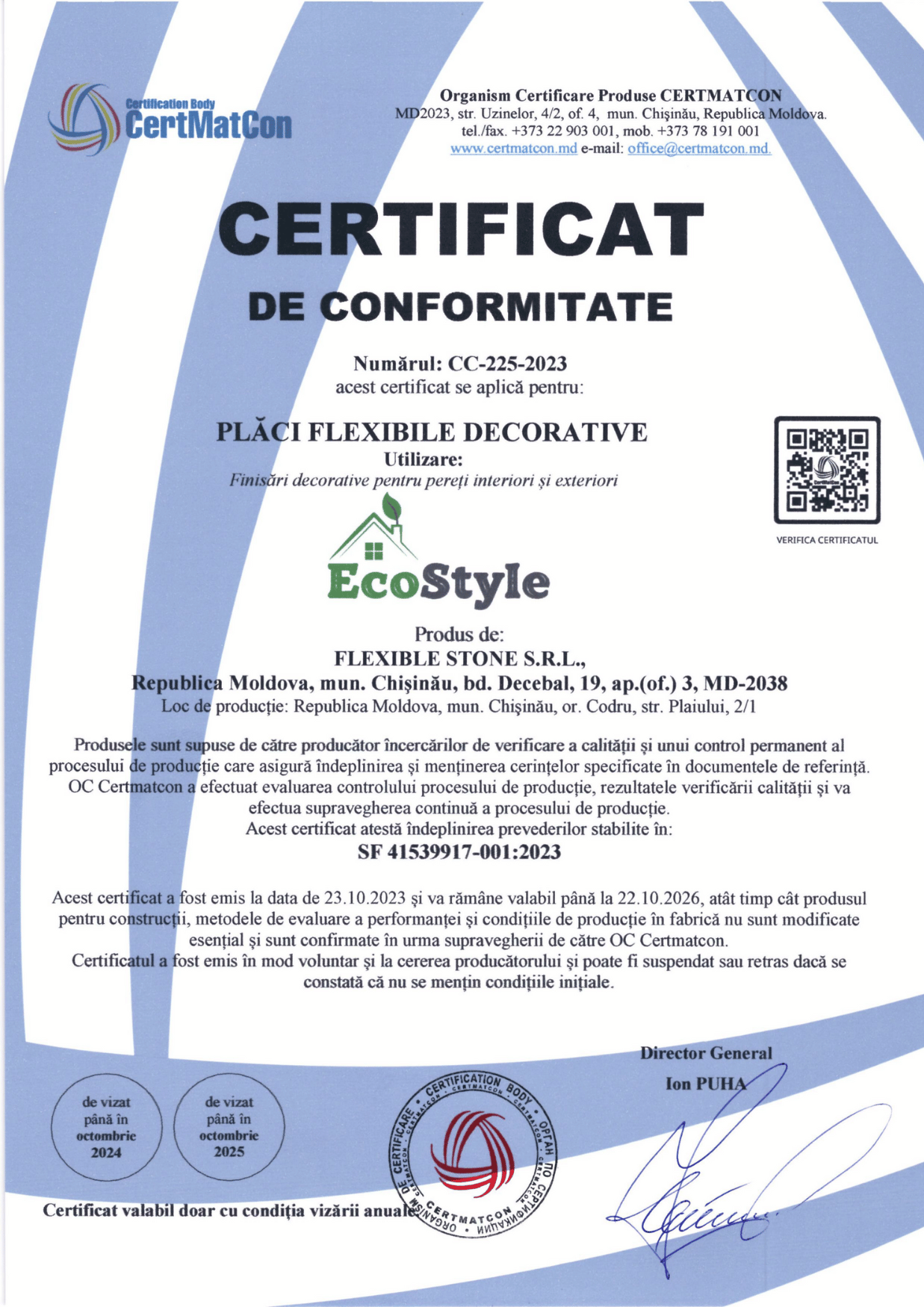 Сайт https://eco-style.md/ (далее "сайт"), предназначенный для продажи отделочных покрытий из мрамора и кварца, принадлежит, как автор/владелец/администратор, компании "Flexible Stone" S.R.L., ID NO: 1022600008502, штаб-квартира находится по адресу: г, Кишинёв, бул. Дечебал, 72/1, Республика Молдова, MD-2043.